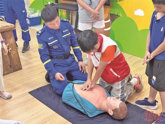 在“救”的技能教学环节,讲师重点演示了对溺水者的抢救步骤,包括快速识别判断、精准实施急救措施等内容,并现场示范了心肺复苏术、海姆立克急救法的操作要点,以及自动体外除颤器的初步使用知识。