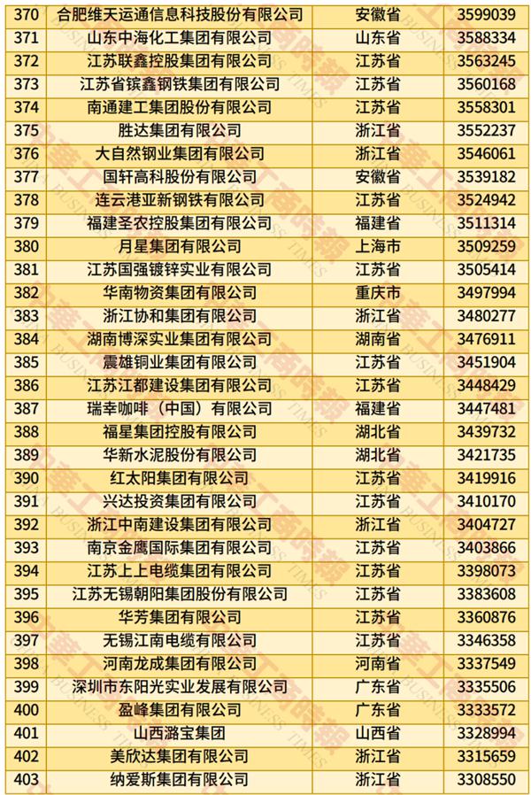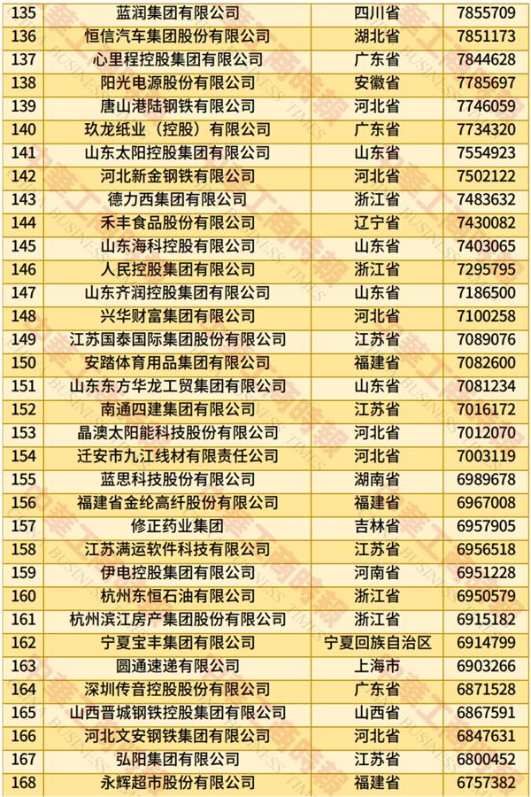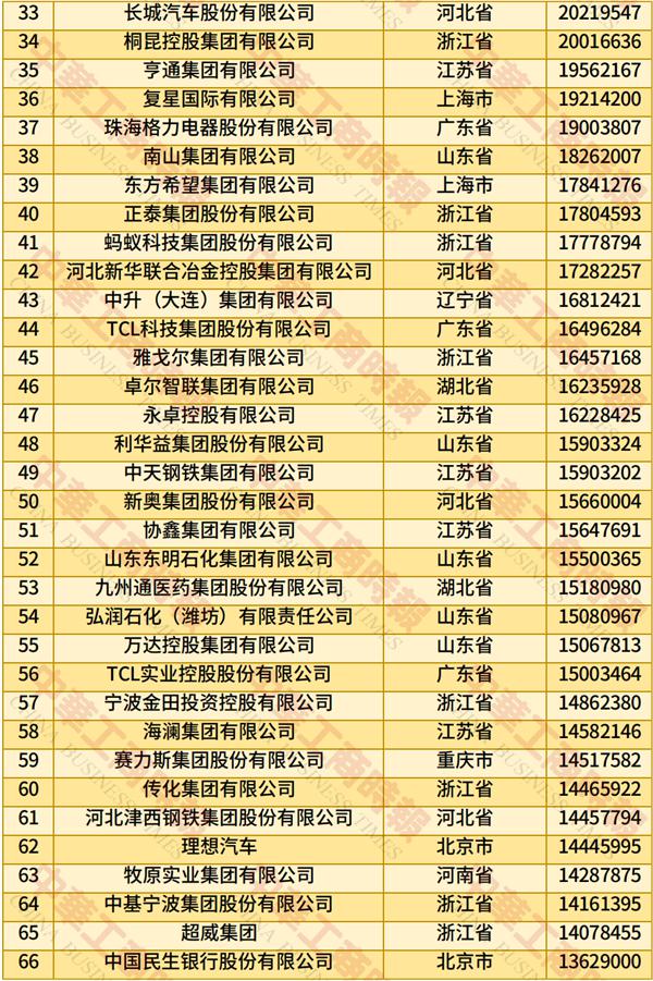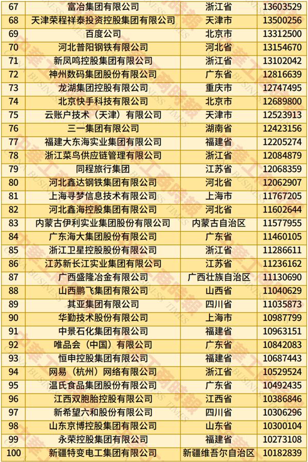 榜单显示,京东集团、阿里巴巴(中国)有限公司、恒力集团有限公司位居前 3。